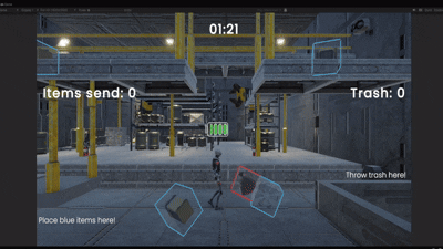 This is an arcade survival timeless game made for the Unity Game Jam. The factory is running hard and the battery of the robot is going down. Your only hope is to catch some of the battery packs that fall from the belts.